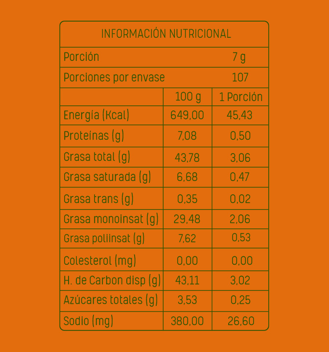 Mantén el envase en un lugar fresco y seco. Cuando abras la bolsa, es importante que mantengas la bolsa sellada, para que el crunch se mantenga intacto